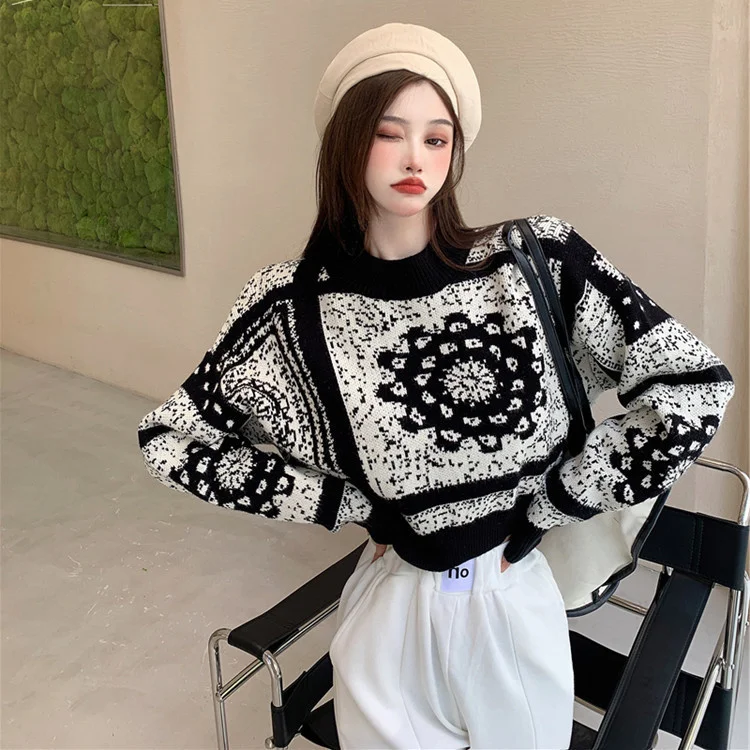 Женский жаккардовый пуловер, тонкий свитер с круглым вырезом, Осень-зима 2021