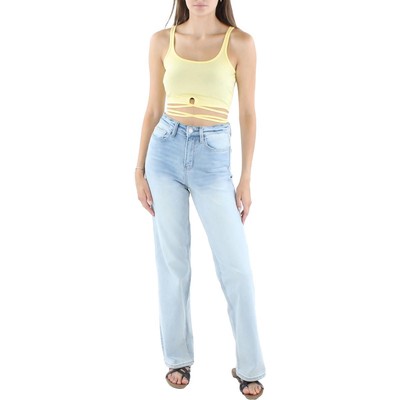 Женский желтый укороченный топ Derek Heart с круглым вырезом и завязками на талии для юниоров BHFO 7648, Mellow yellow