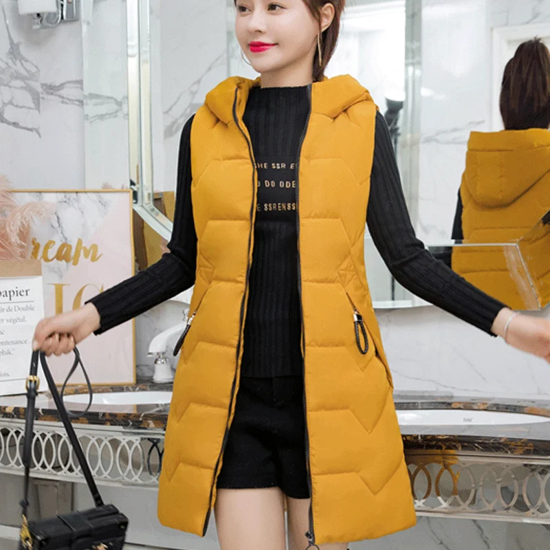 Женский жилет, зимняя куртка, женский красный жилет с карманами и капюшоном, женский жилет, однотонное длинное пальто на молнии