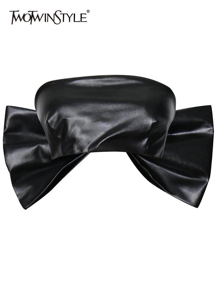 Женский жилет из искусственной кожи TWOTWINSTYLE, лоскутный жилет с открытыми плечами, открытой спиной и высокой талией, Новинка