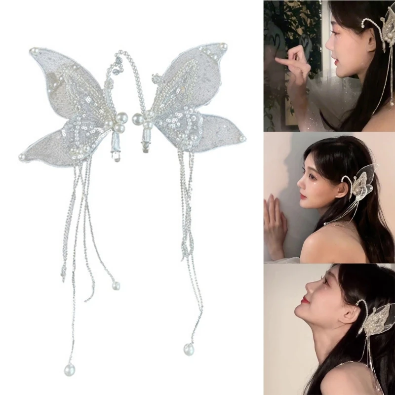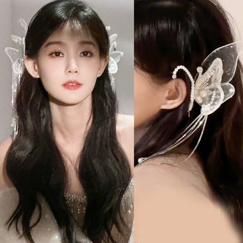 Женский зажим для волос с большими бабочками, зажим для волос с кристаллами