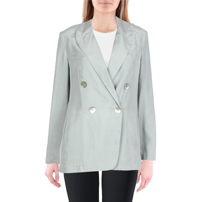 Женский зеленый шелковый двубортный пиджак Vince с драпировкой и разрезом на подоле BHFO 2139