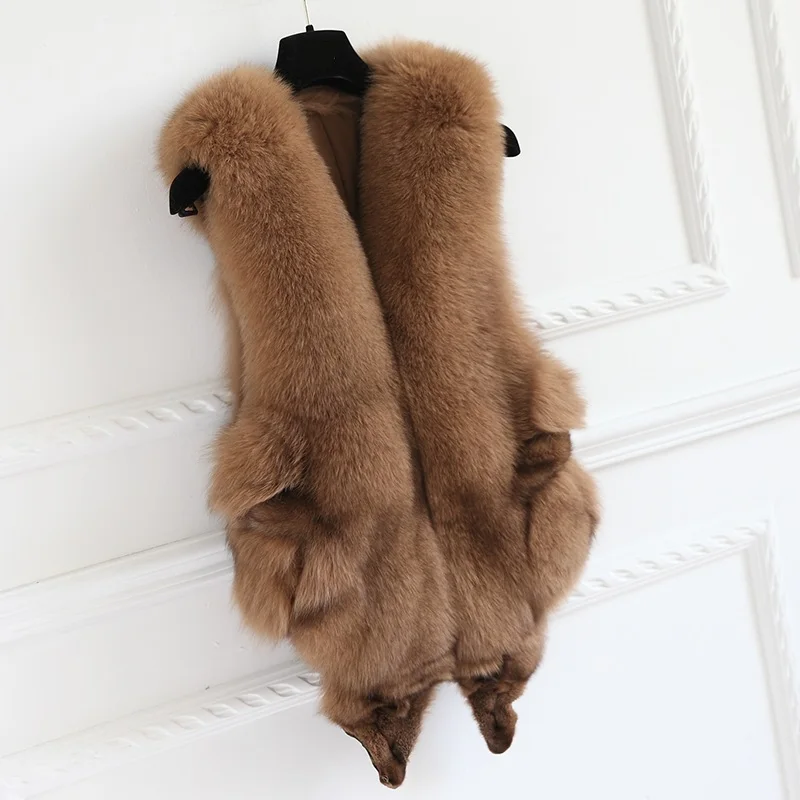 Женский зимний жилет из натурального меха, пушистая и пушистая парка из натурального Лисьего меха, модель F2545