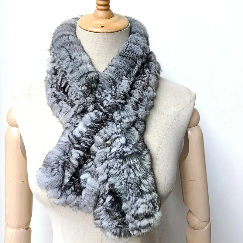 Женский зимний меховой шарф из натуральной шиншиллы, Женский пушистый роскошный мягкий меховой шарф, модный шарф для шеи