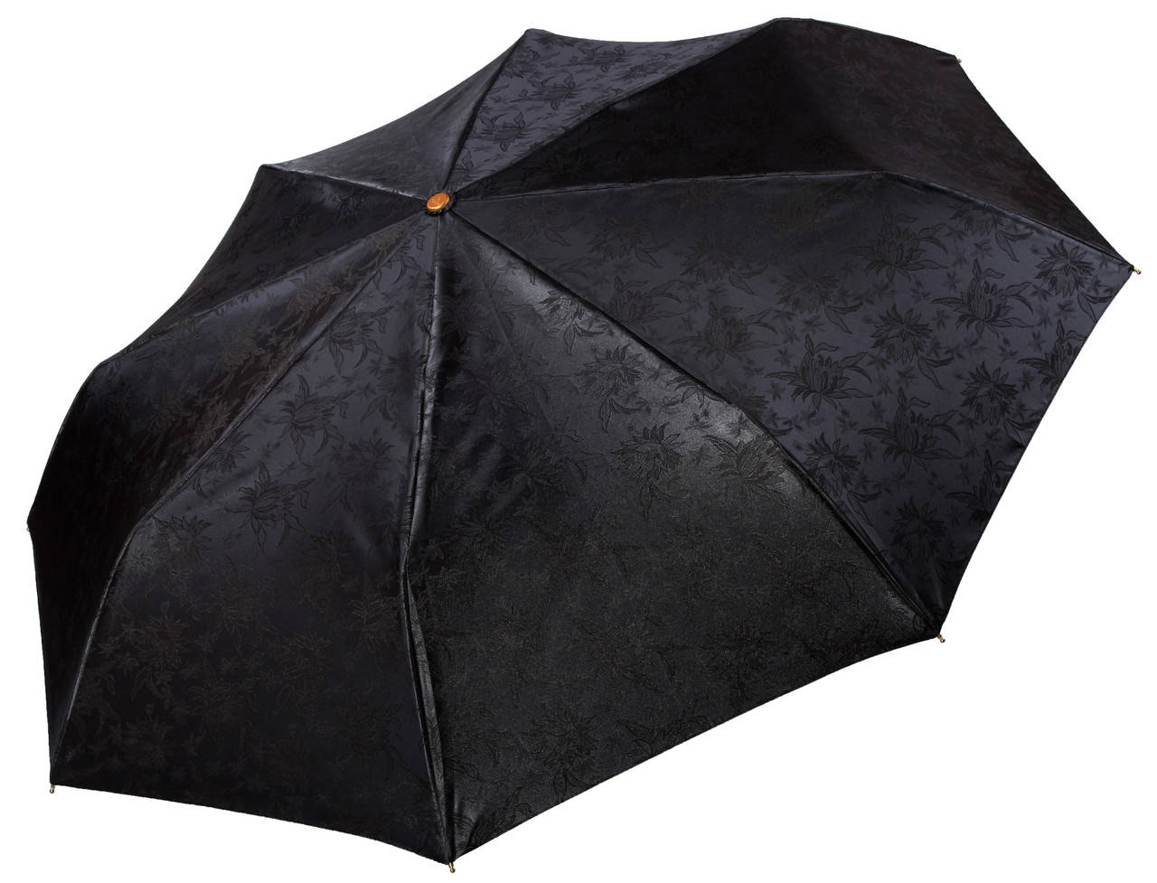 Женский зонт Три Слона (Япония) с куполом из необычной ткани. Ткань плотная (жаккард), рисунок на ней при преломлении света слегка переливается, таким образом цветы на зонте кажутся объемными. Смотрится такая модель очень необычно и стильно.