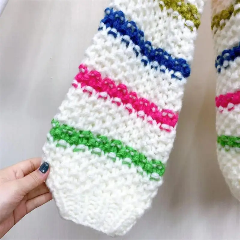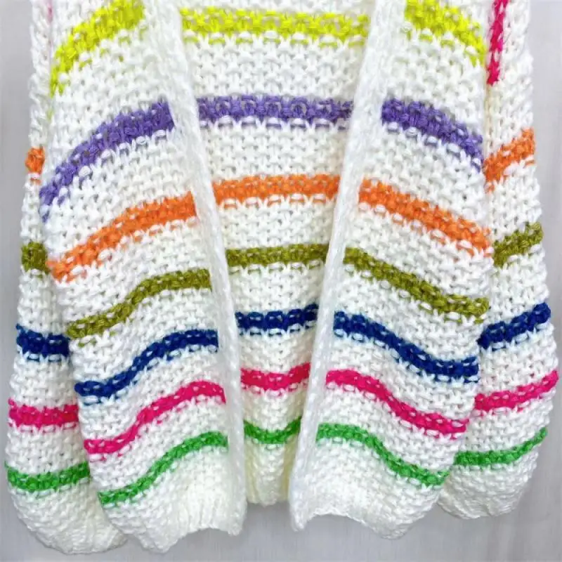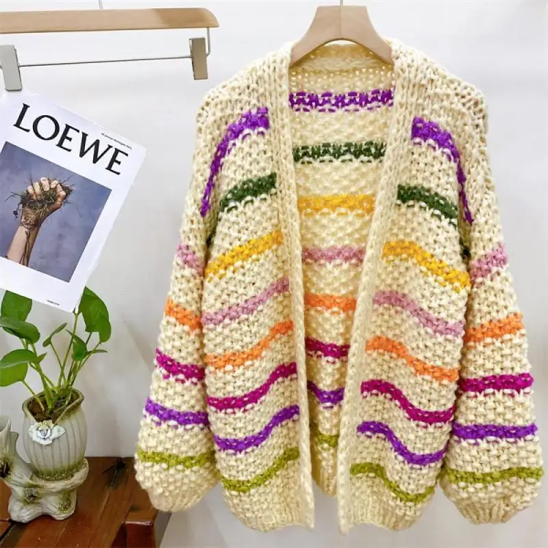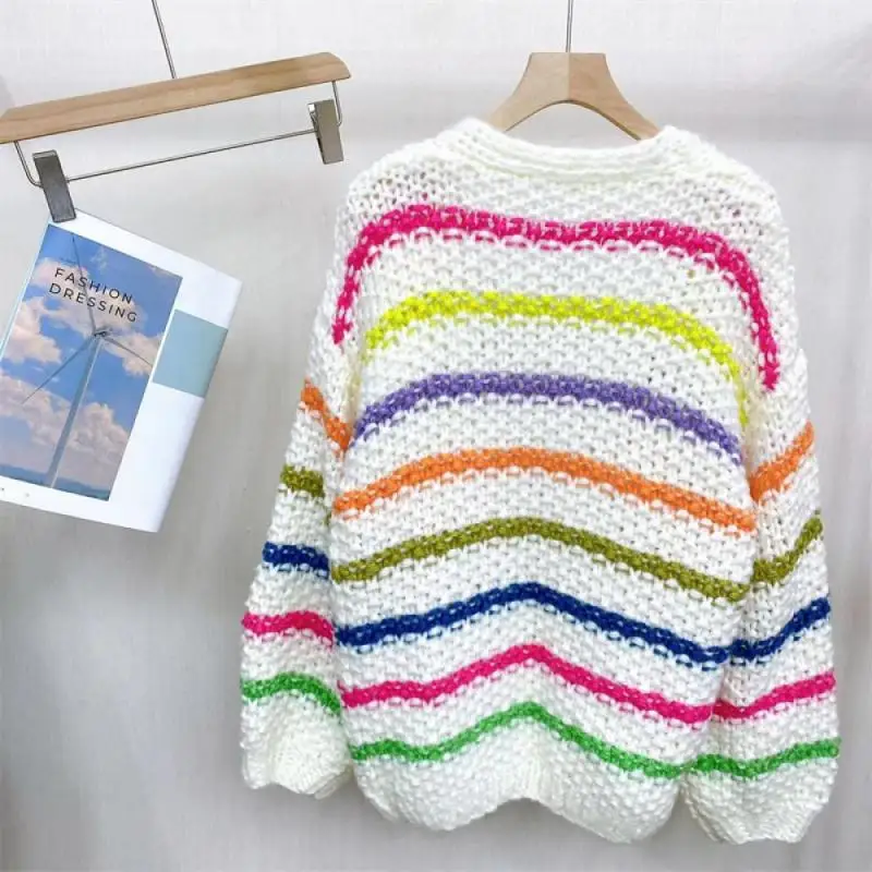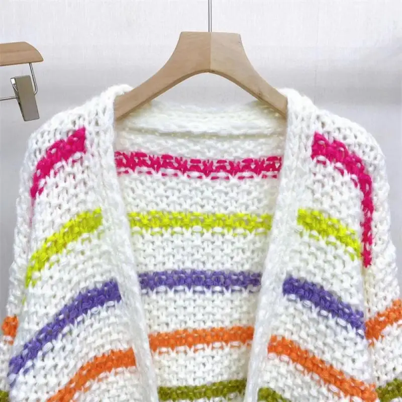 Женский кардиган в радужную полоску, кардиган оверсайз ручной работы средней длины, 2024