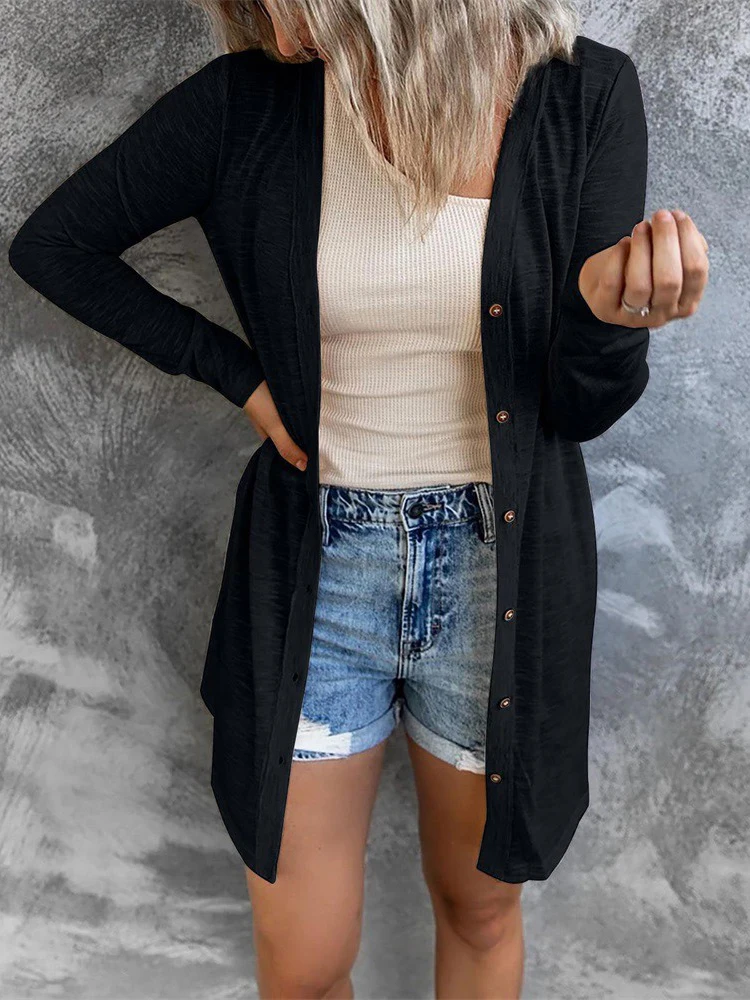 Женский кардиган на пуговицах спереди, повседневный удлиненный кардиган, осень 2022
