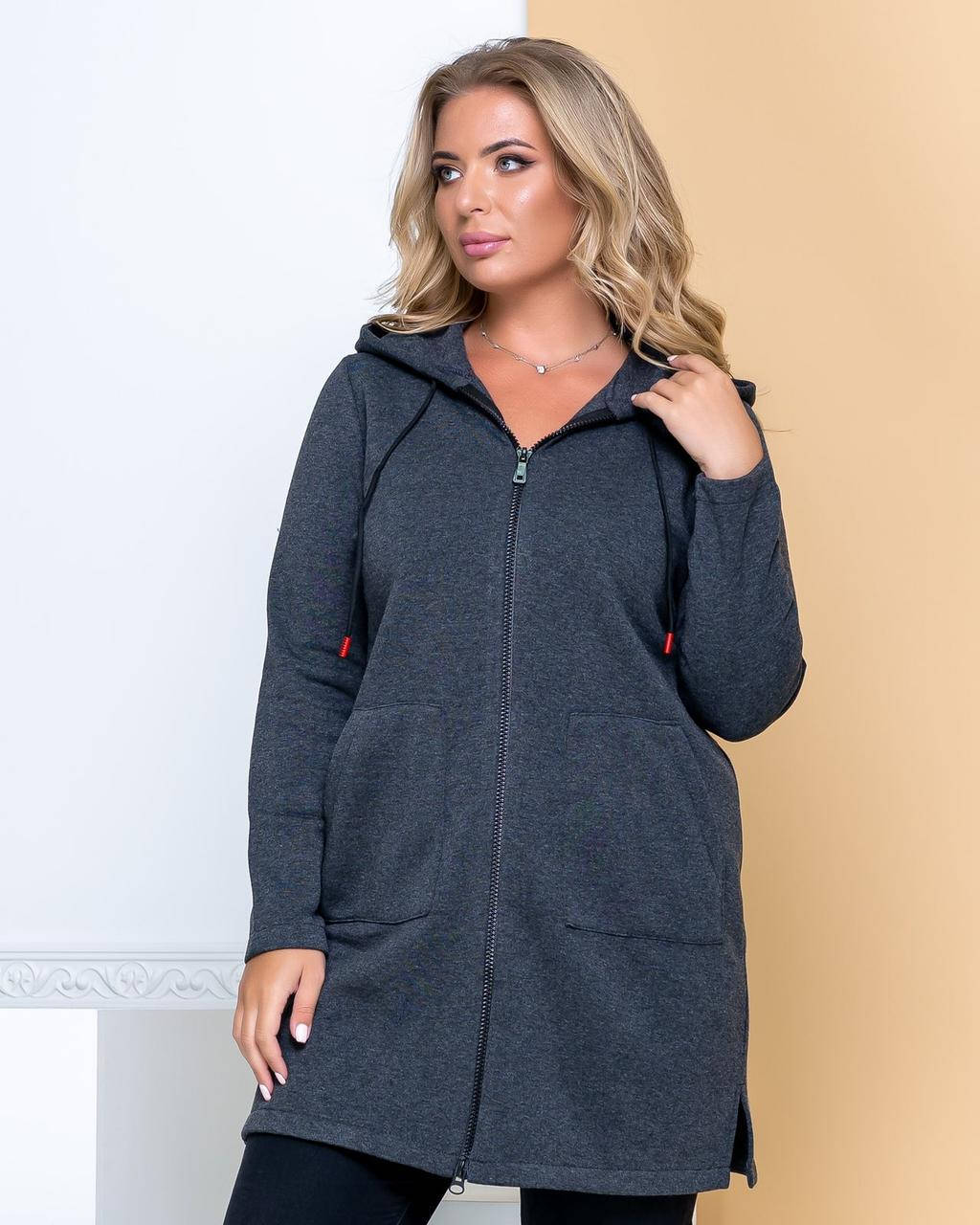 Кардиган батал на флисе из трехнитки. Есть много цветов - синий, черный, персик, серый, кофе. Размеры - 52, 54, 56.