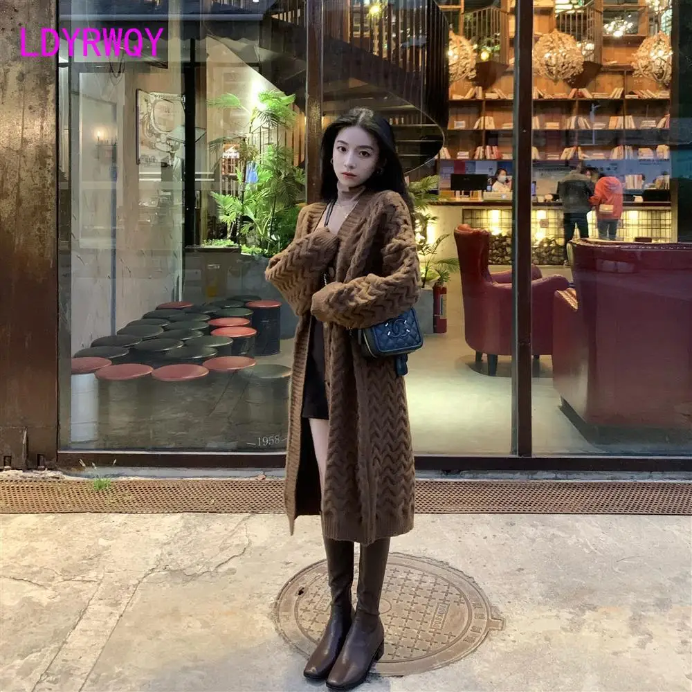 Женский кардиган средней длины, свободный свитер в Корейском стиле, Осень-зима