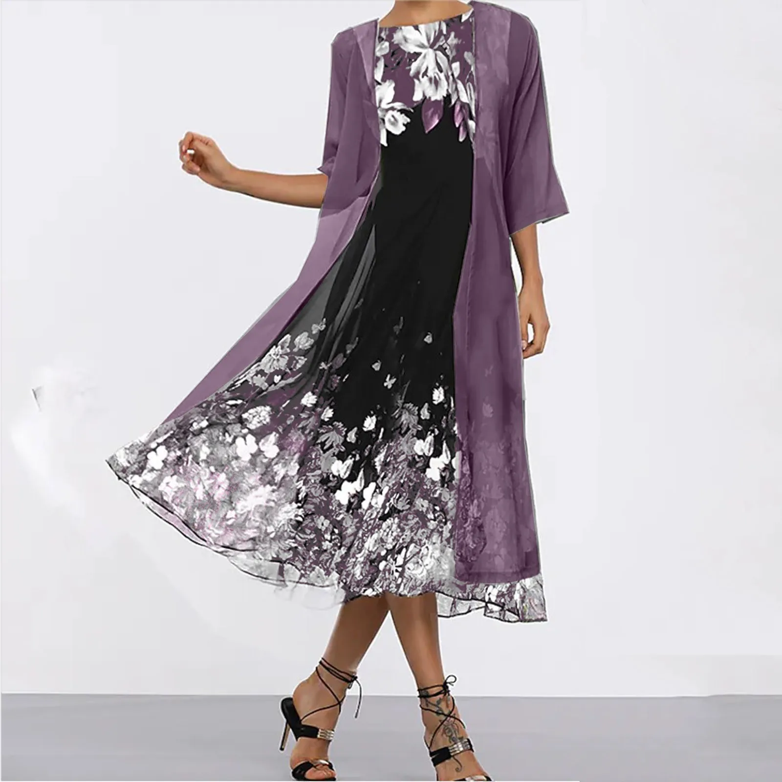 Женский кардиган средней длины, элегантное свободное Повседневное платье с винтажным принтом и круглым вырезом, модель 2023 года
