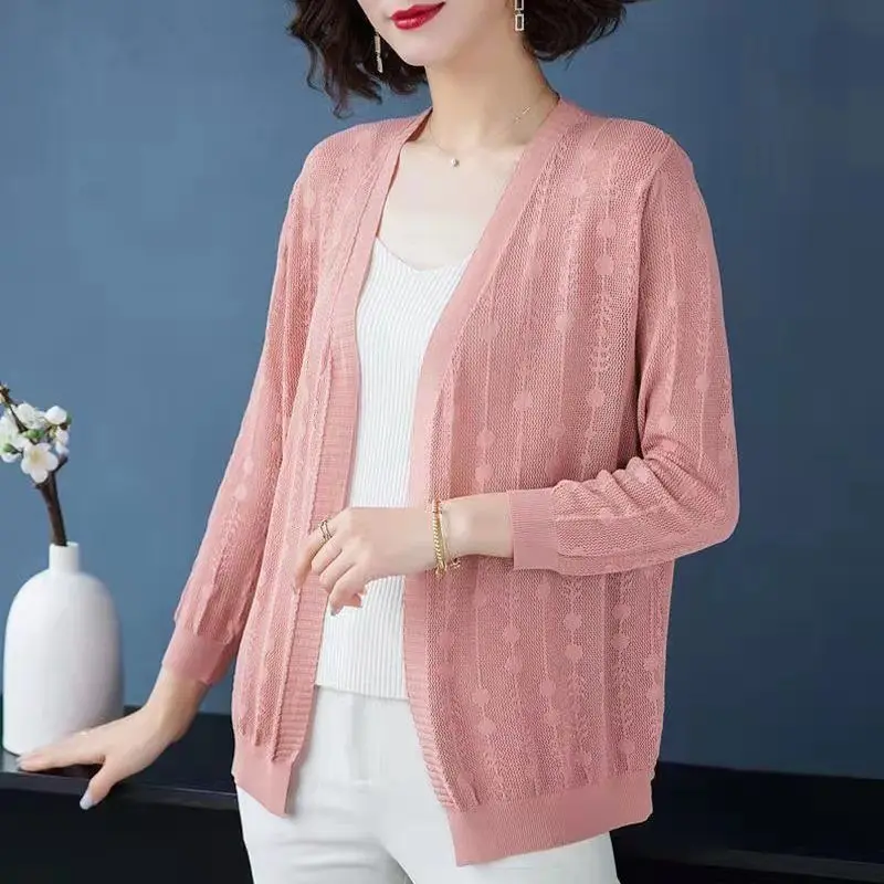 Женский кардиган с вырезами, тонкий трикотажный кардиган для защиты от солнца, верхняя одежда, S33, лето 2023