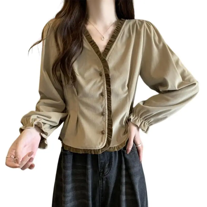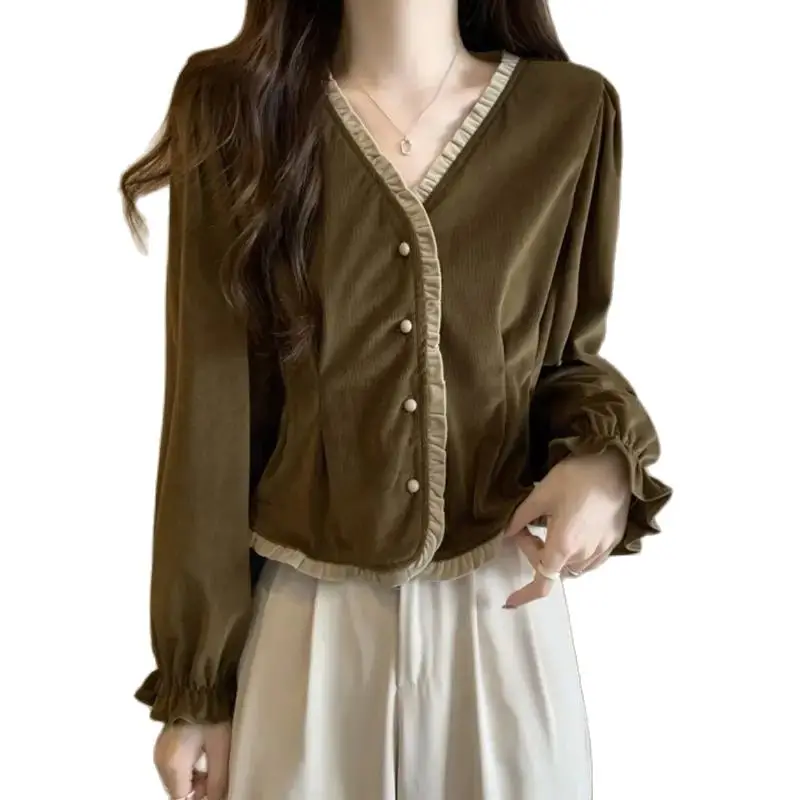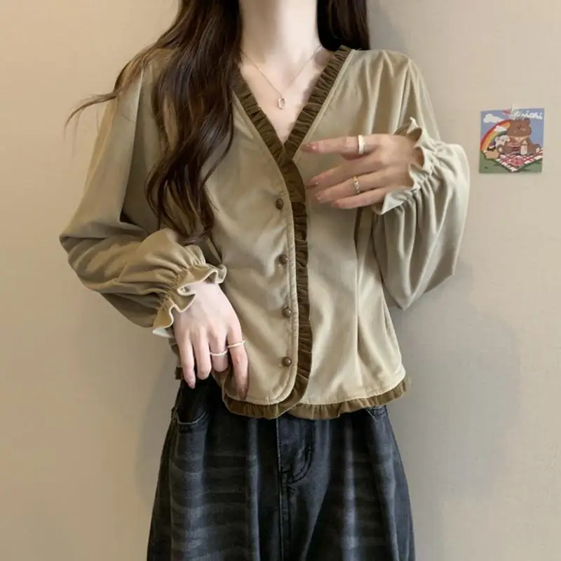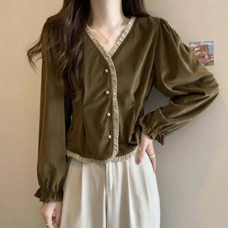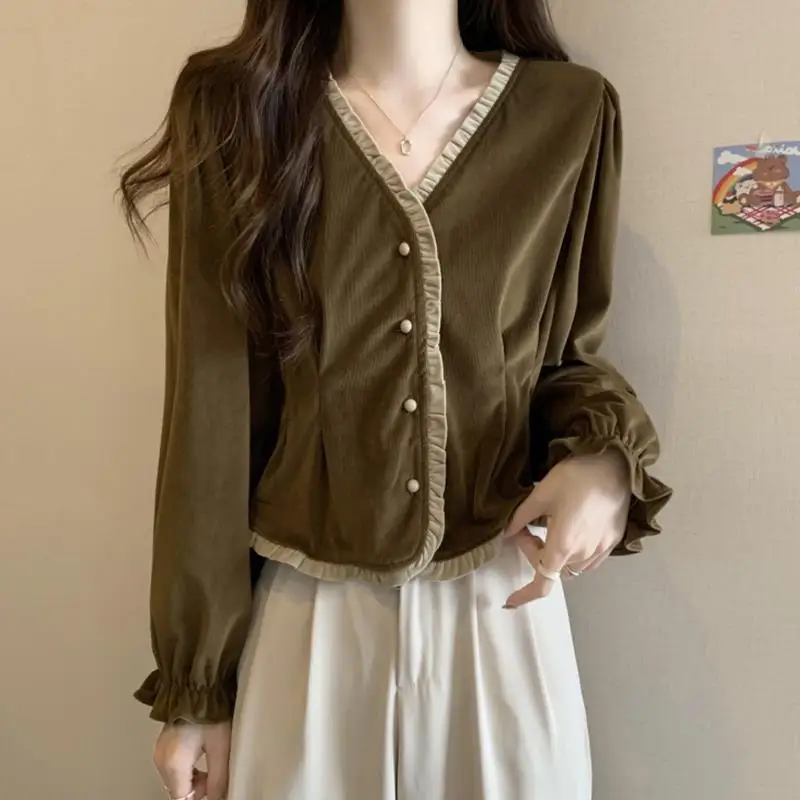 Женский кардиган с длинным рукавом, рубашка в стиле французского ретро