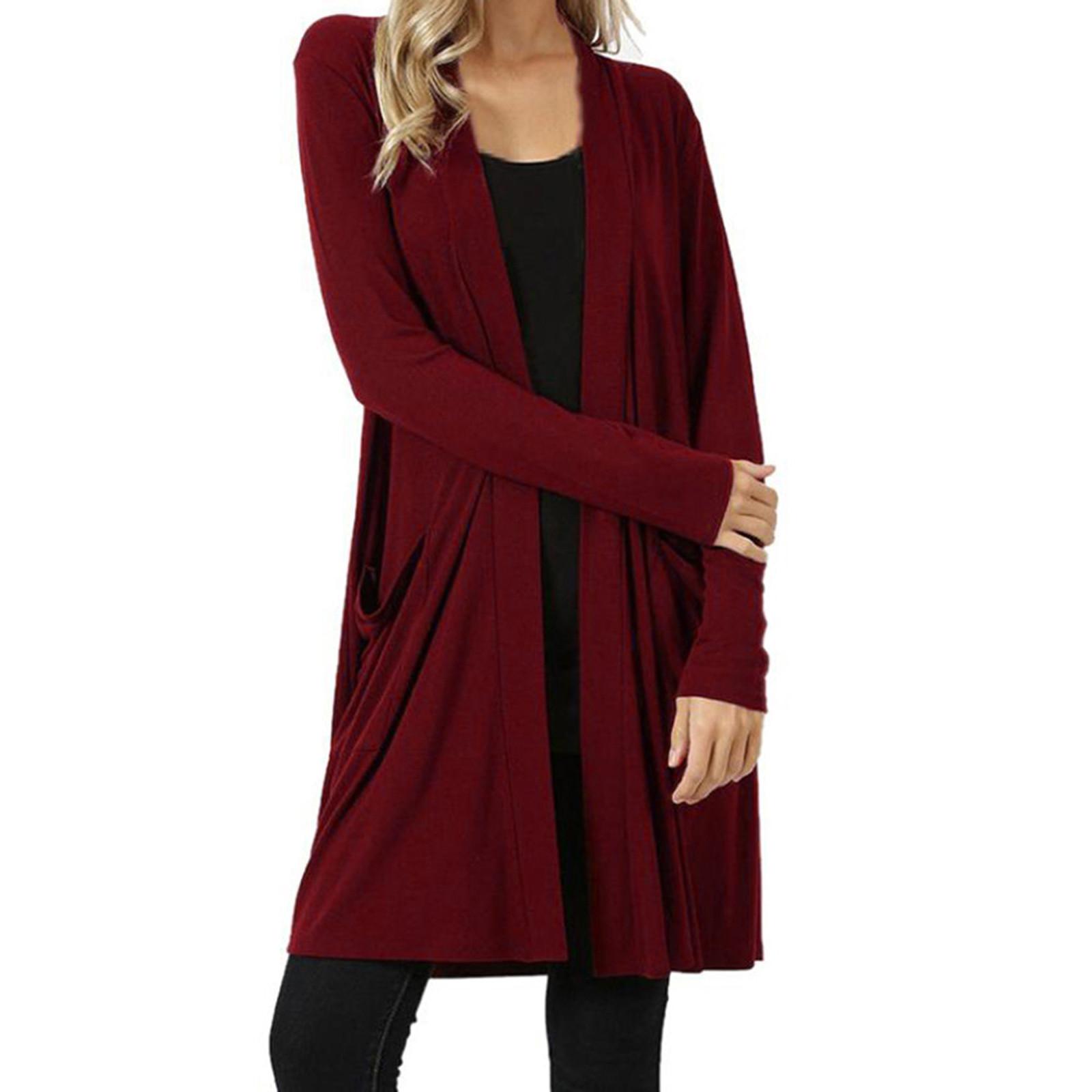 Женский кардиган с открытой передней частью, свитер с длинными рукавами и карманами, свободная драпировка XXXXL винный