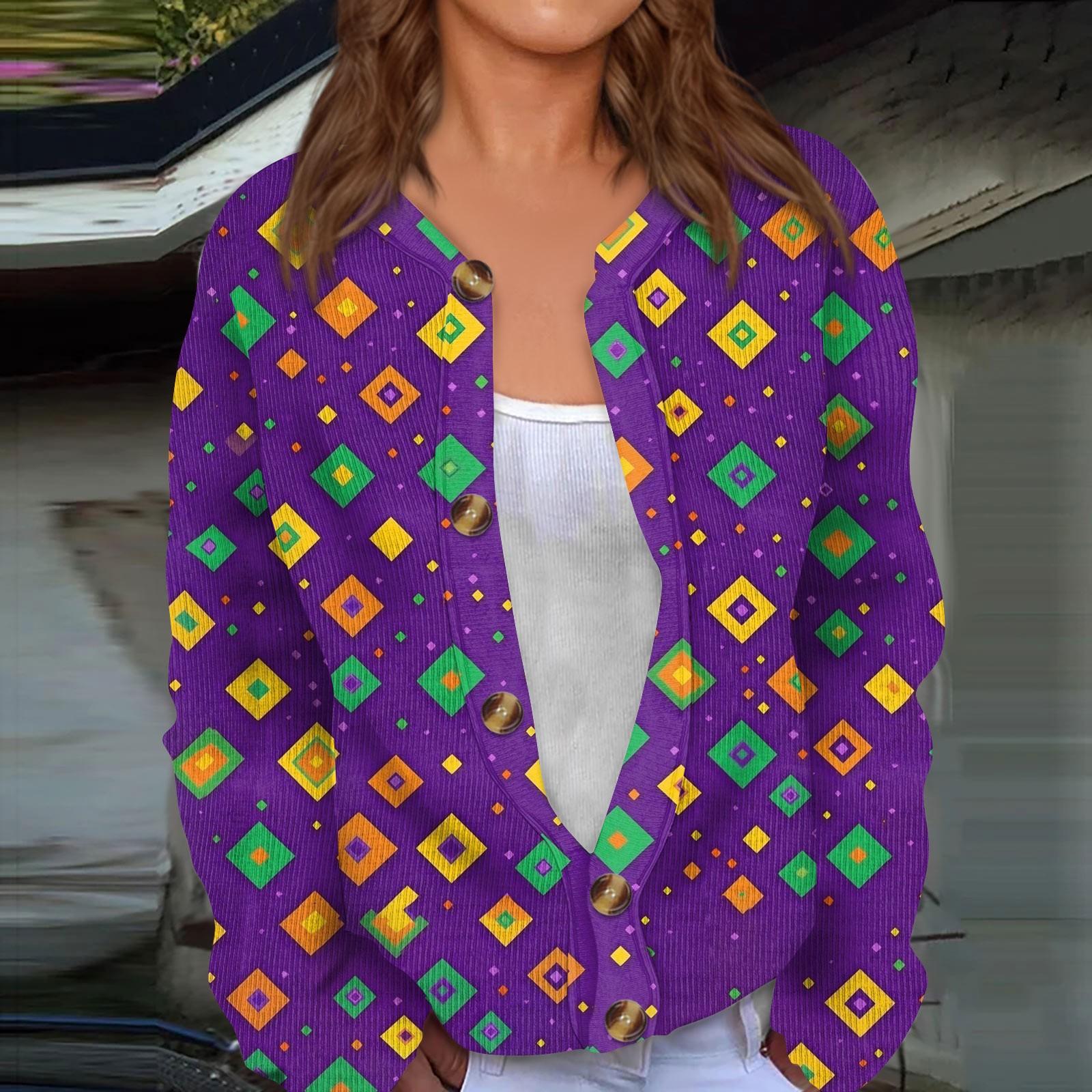 Женский кардиган с принтом Марди Гра с длинными рукавами и пуговицами L темно-фиолетового
