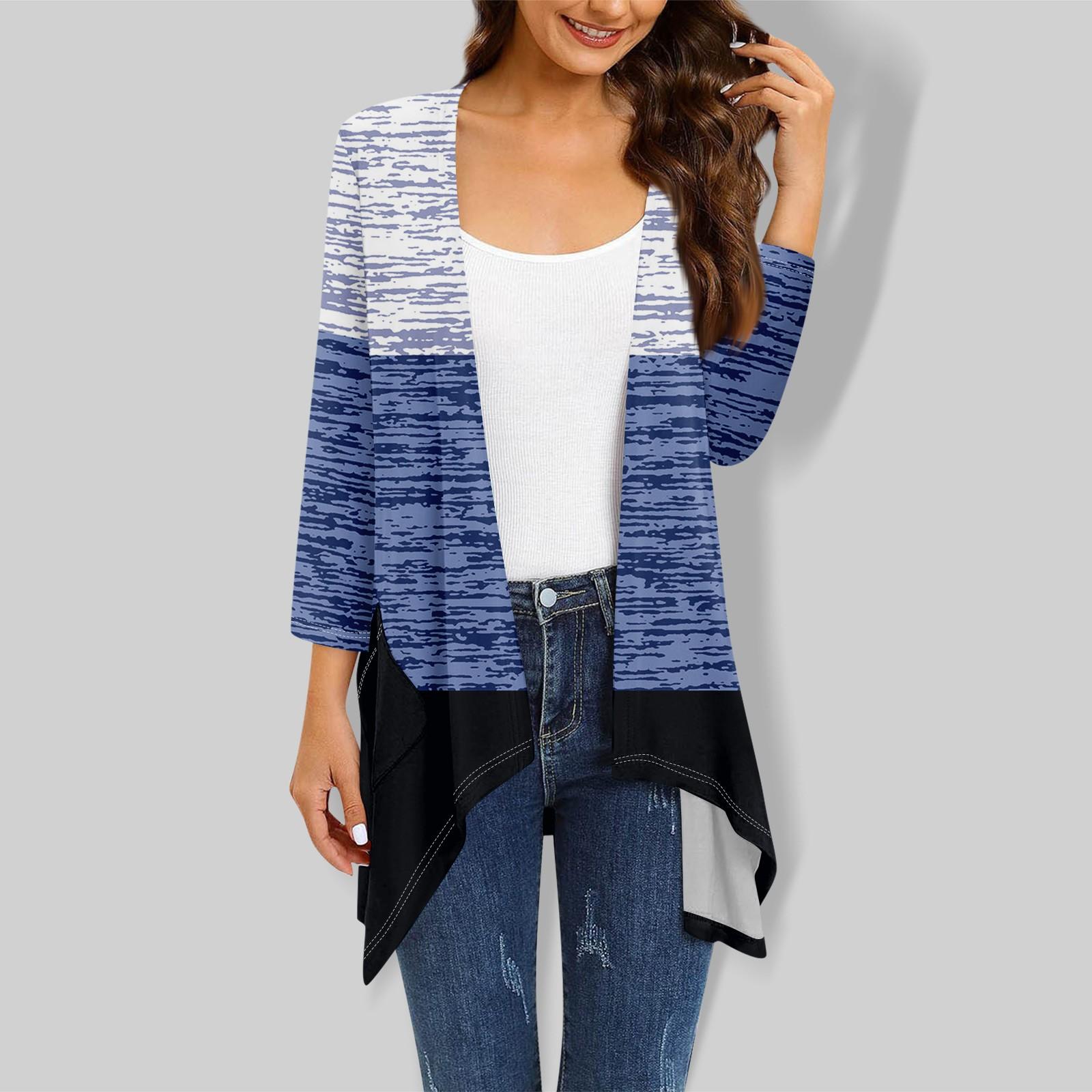 Женский кардиган с рукавом 3/4 и принтом, вязаный легкий кардиган с открытой передней частью и карманами XXXL