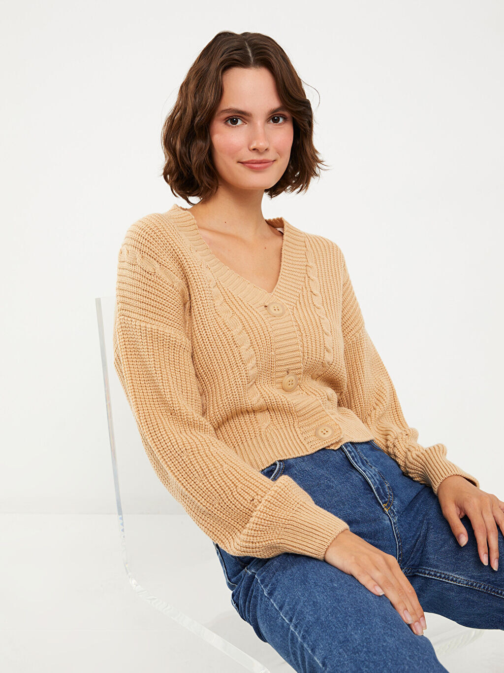 Женский кардиган с V-образным вырезом и длинными рукавами Xside, Коричневый, Женский кардиган с V-образным вырезом и длинными рукавами Xside