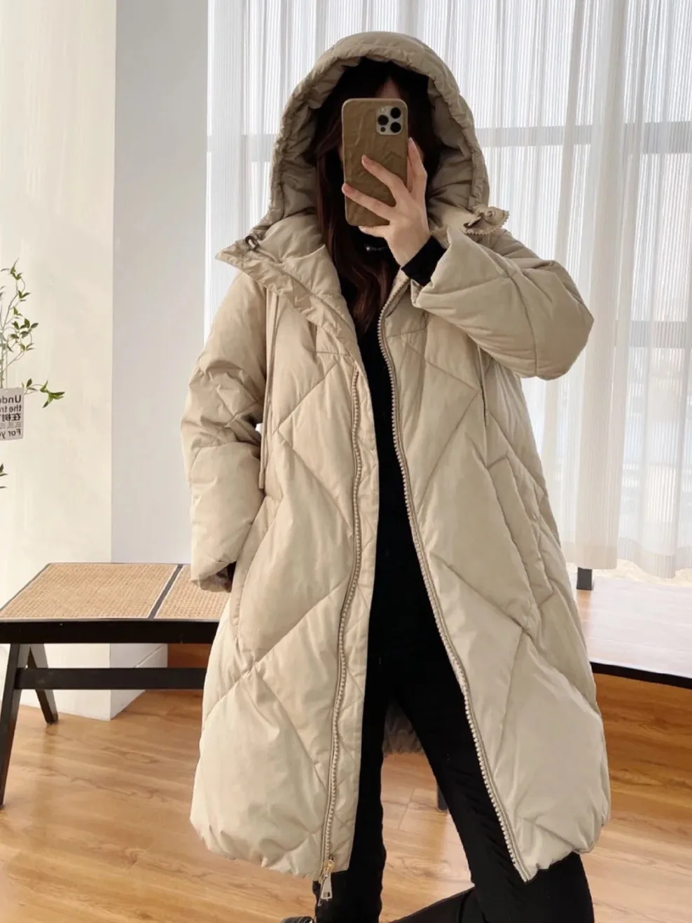 Женский клетчатый пуховик средней длины со стразами, зимнее Новое Женское утепленное теплое пальто на молнии с капюшоном и кулиской