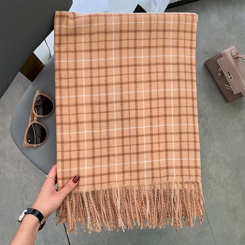 Женский клетчатый шарф в японском стиле, винтажный и универсальный утолщенный теплый студенческий шарф с кисточками из имитации кашемира, трендовый тренд ONE SIZE