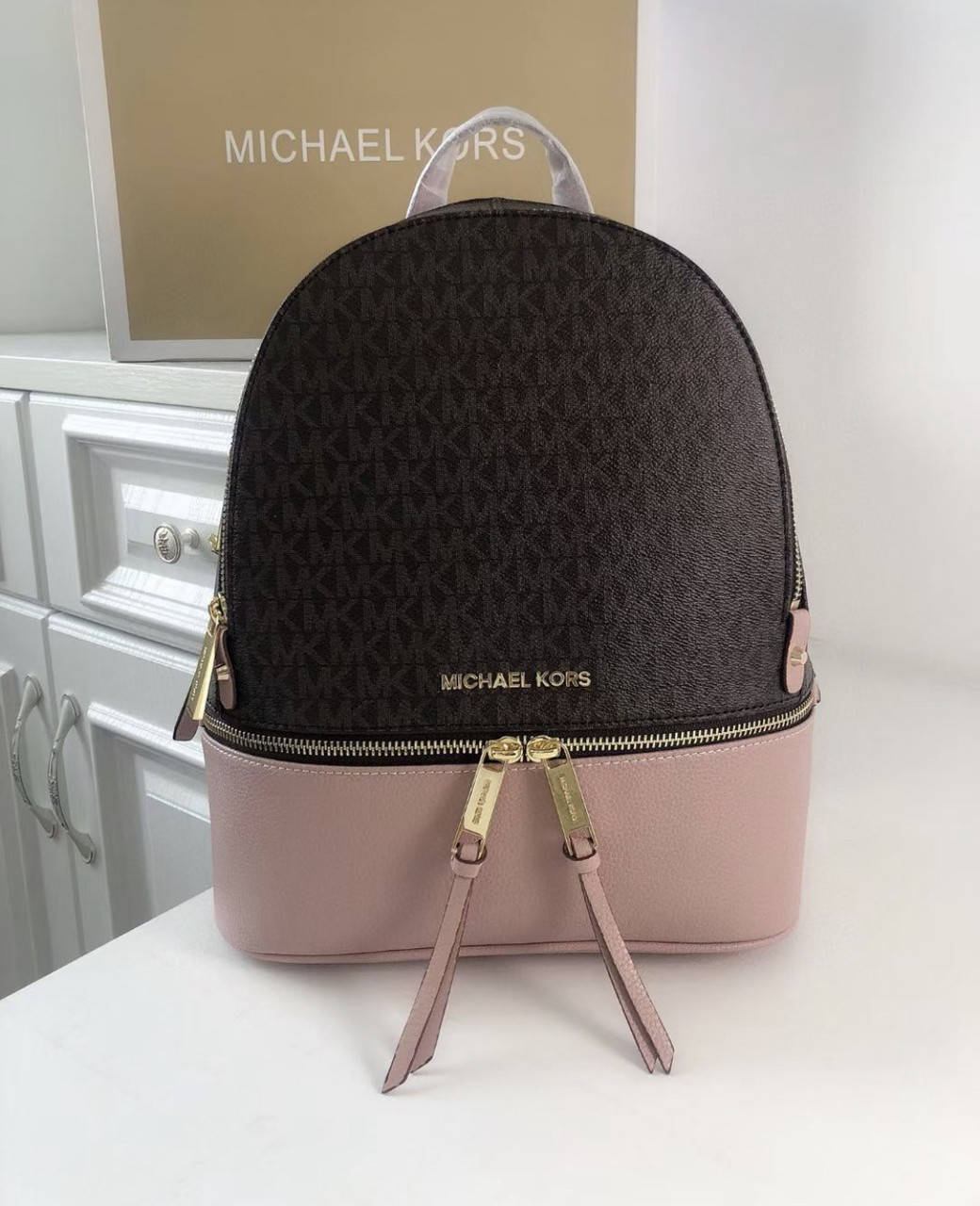 Женский кожаный рюкзак Michael Kors Rhea Zip 1344 Lux, Коричневый