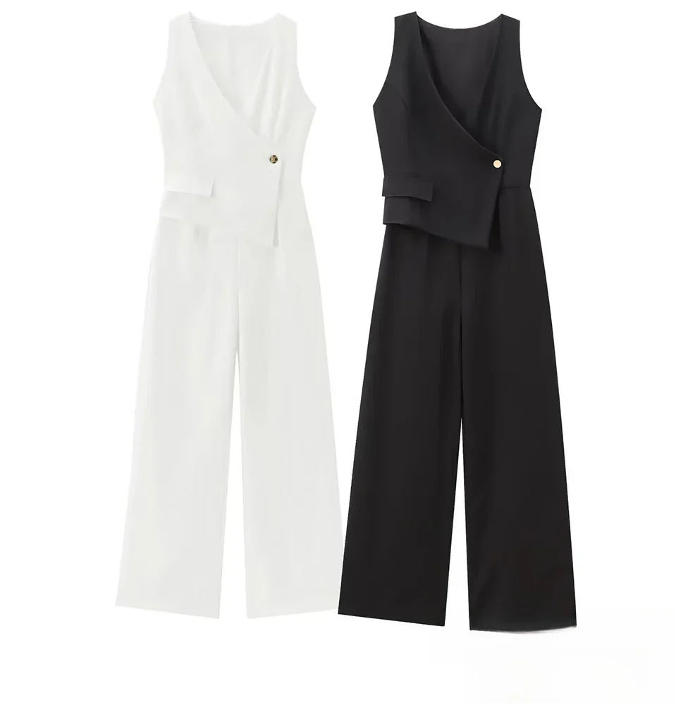 KONDALA-Женский модный комбинезон без рукавов, новинка 2025 года, осень-лето, городской пригородный комбинезон, асимметричный жилет, креповый повседневный комбинезон