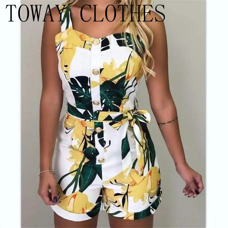 Женский комбинезон на пуговицах, без рукавов, с принтом, на толстых бретельках