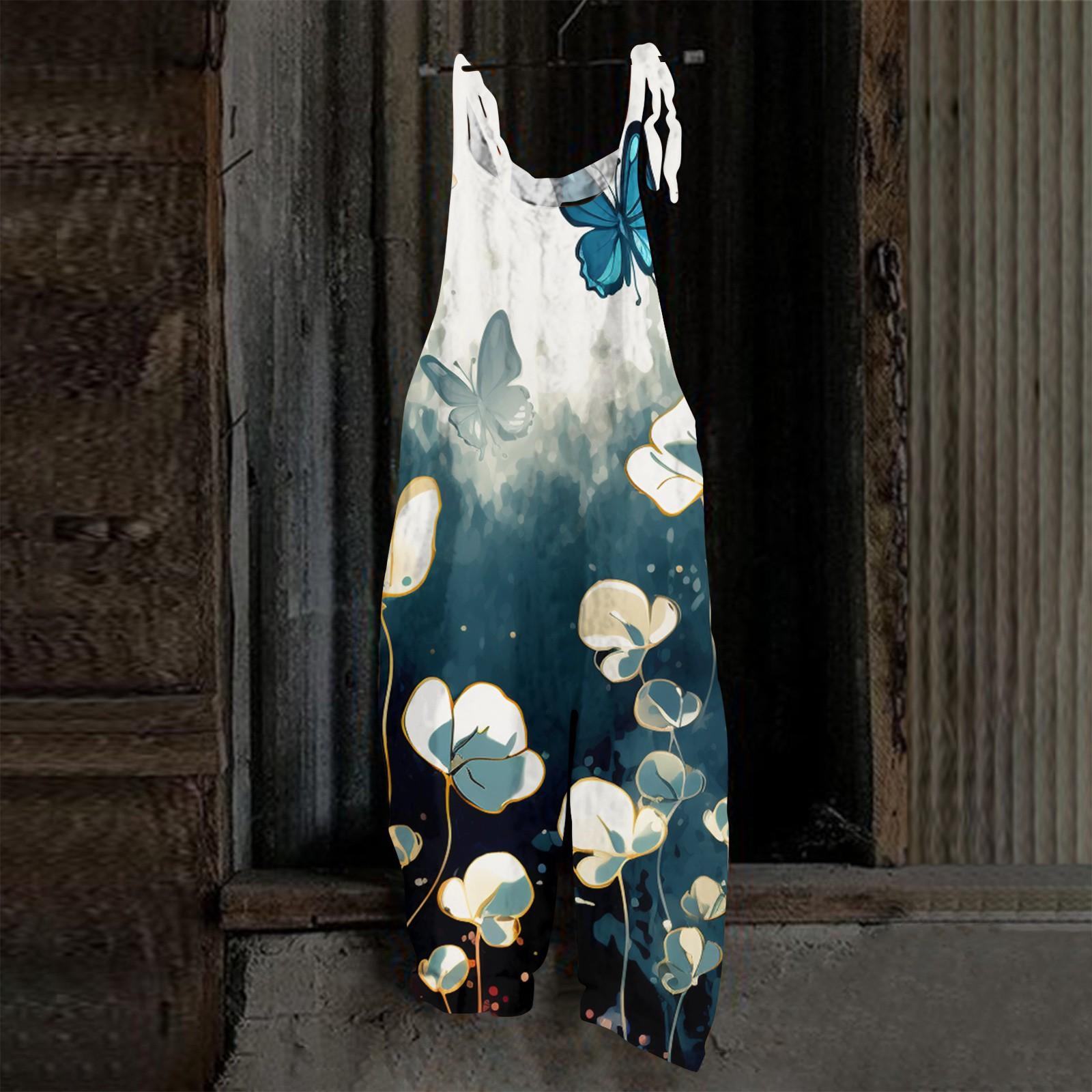 Женский комбинезон с принтом, повседневные свободные ретро-бретельки из хлопка и льна M
