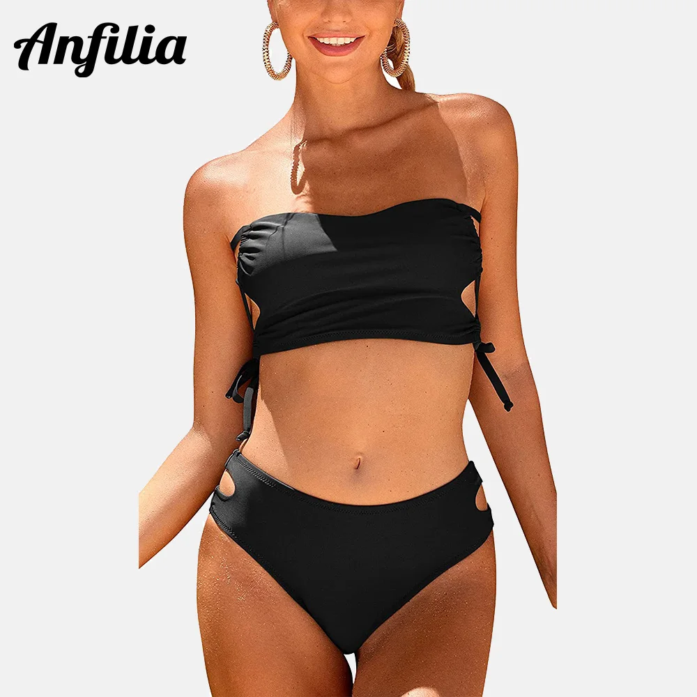 Женский комплект бикини на бретельках Anfilia, укороченный купальник из двух частей с квадратным вырезом и вырезом на груди