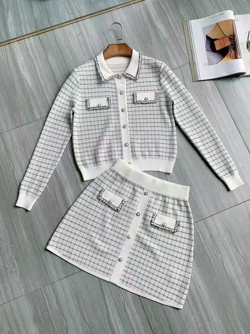 Женский комплект из Свитера и юбки, трикотажный комплект с геометрическим узором и длинным рукавом, Осень-зима 2021