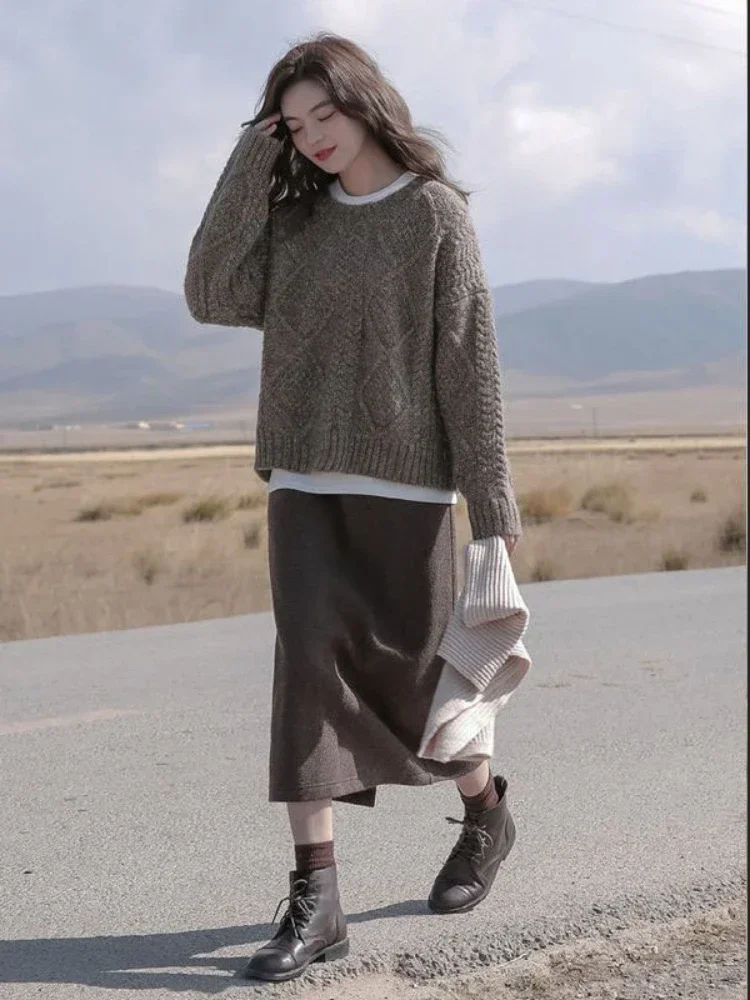 Женский комплект из двух предметов, трикотажный свитер и юбка, Осень-зима 2024