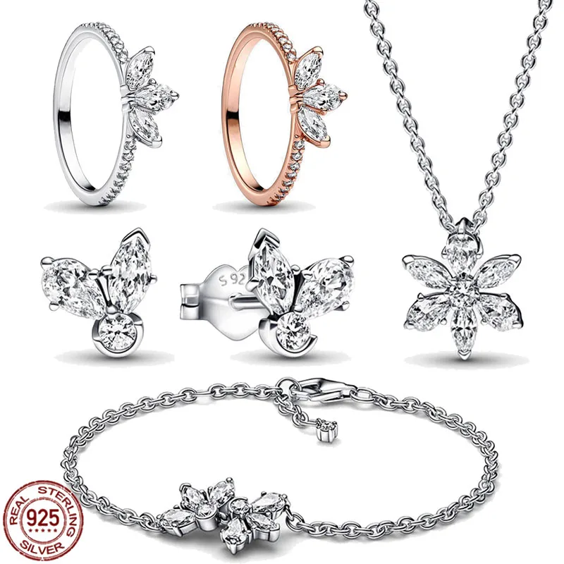 Женский комплект из колье, браслета и сережек, из серебра 925 пробы