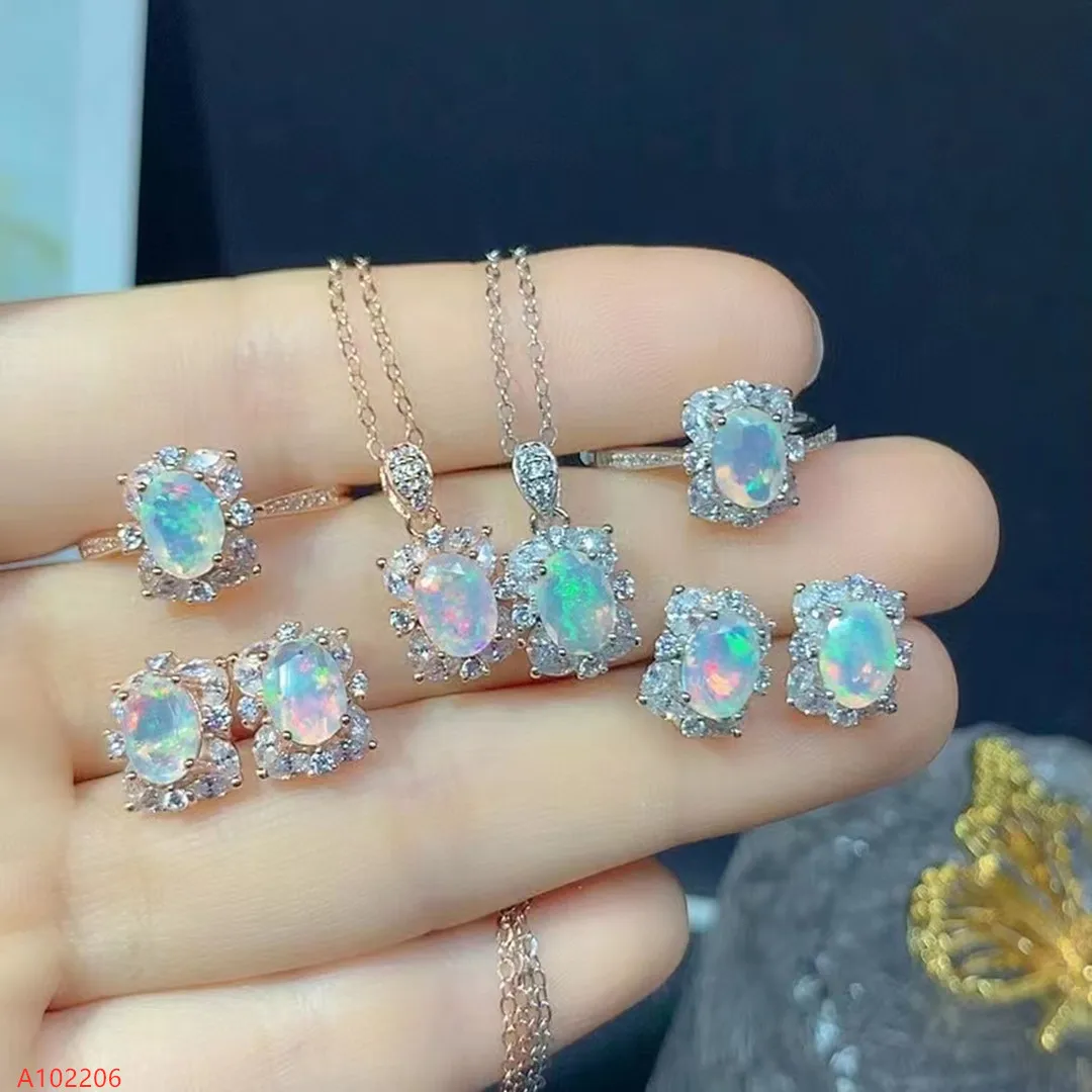 Женский комплект из колье и серёг, из серебра 925 пробы, с натуральным опалом