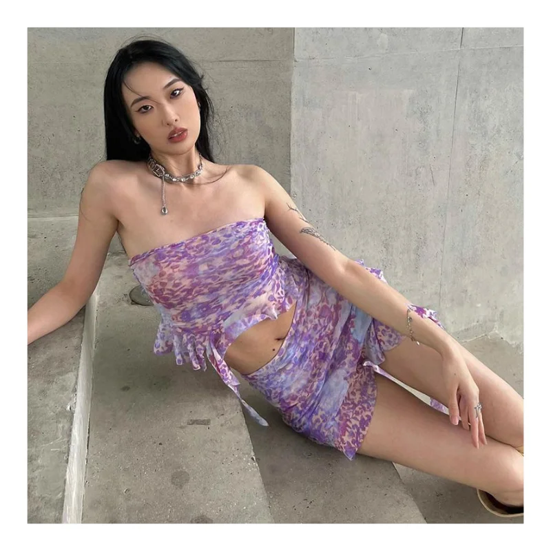 Женский комплект из топа без рукавов и юбки с заниженной талией