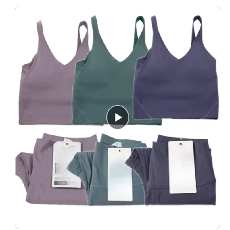 Женский комплект из 2 предметов, обтягивающий спортивный U-образный бюстгальтер, жилет для йоги, короткий топ и леггинсы с высокой талией, съемные накладки на грудь, спортивный костюм с индивидуальным логотипом