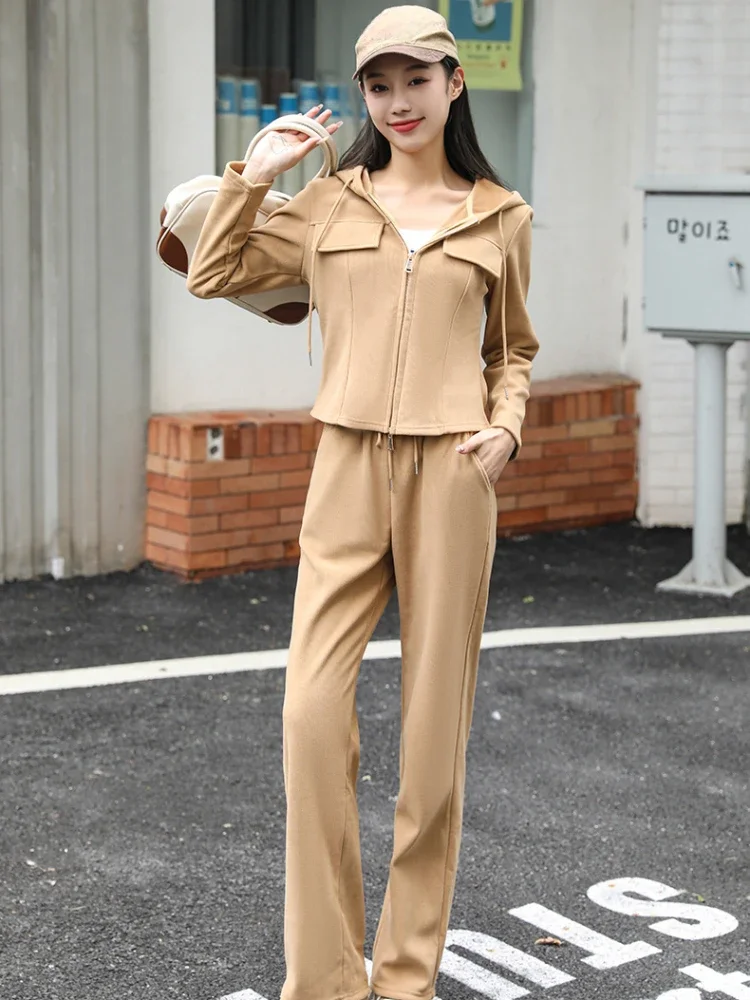 Женский комплект из 2 предметов, однотонный кардиган с капюшоном и брюки