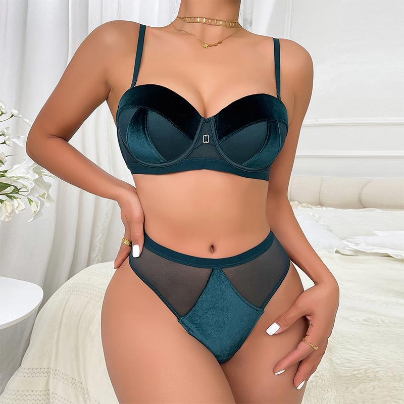Женский комплект нижнего белья во французском стиле со съемными бретелями, комплект нижнего белья в стиле пэчворк с половиной чашки, мягкий комплект бюстгальтера и трусиков на косточках 85C яшмовый