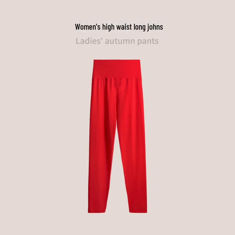 Женский комплект нижнего белья из хлопка ярко-красного цвета на осень — теплая подкладка А-типа, тонкая нижняя часть с круглым вырезом. high waist pants, size M ярко-красный