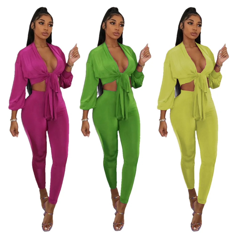 Женский комплект одежды из двух предметов, однотонный соблазнительный бандажный топ размера S-Xl, осенний комплект из двух предметов, 2021
