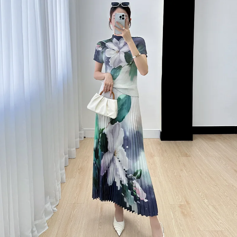 Женский комплект с длинной юбкой, плиссированная футболка и топ в винтажном стиле, лето