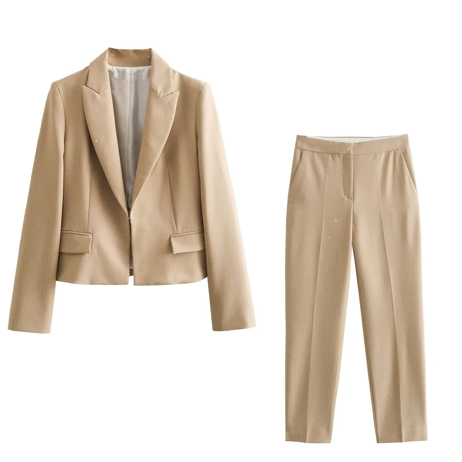 Женский короткий Блейзер и брюки до щиколотки, с длинным рукавом и карманами