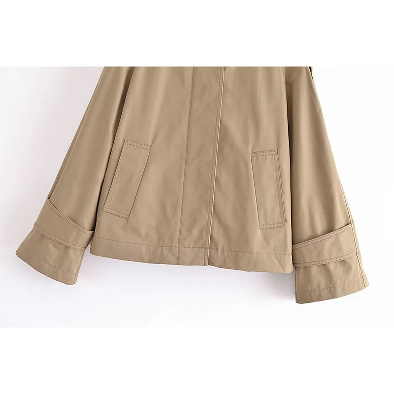 Женский короткий Тренч на бретельках с длинным рукавом и воротником с лацканами