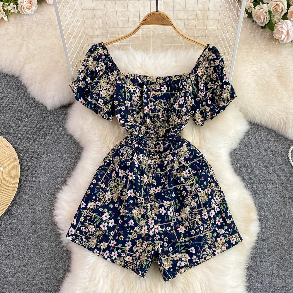 Женский короткий комбинезон с цветочной вышивкой, с коротким рукавом и высокой талией