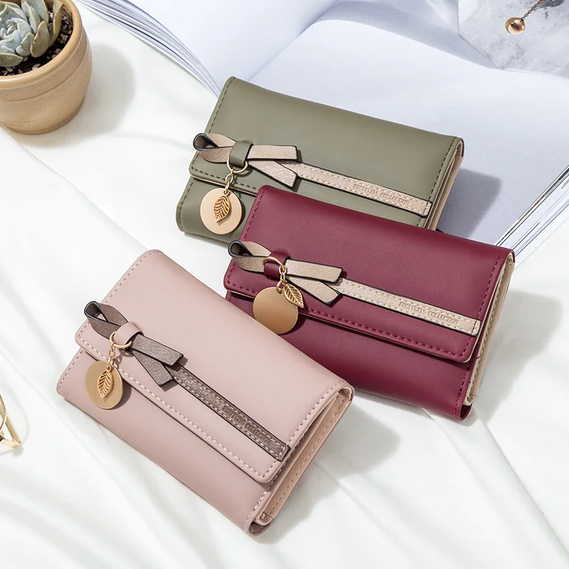Женский короткий кошелек с бантом и подвеской, милый кошелек для японских студентов