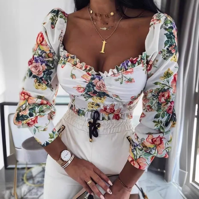 Женский короткий микро-эластичный Топ с квадратным вырезом и принтом, лето 2024