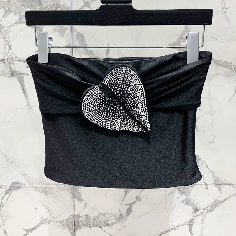Женский короткий топ с бриллиантами, черный облегающий топ для девушек, модель Y2K на лето, 2024