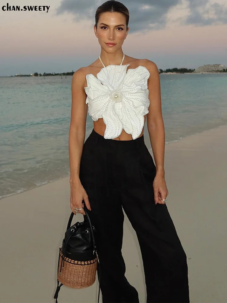fashion backless sleeveless hanging neck t blouse for woman summer blusas deep v halter shirt femme x0521, White