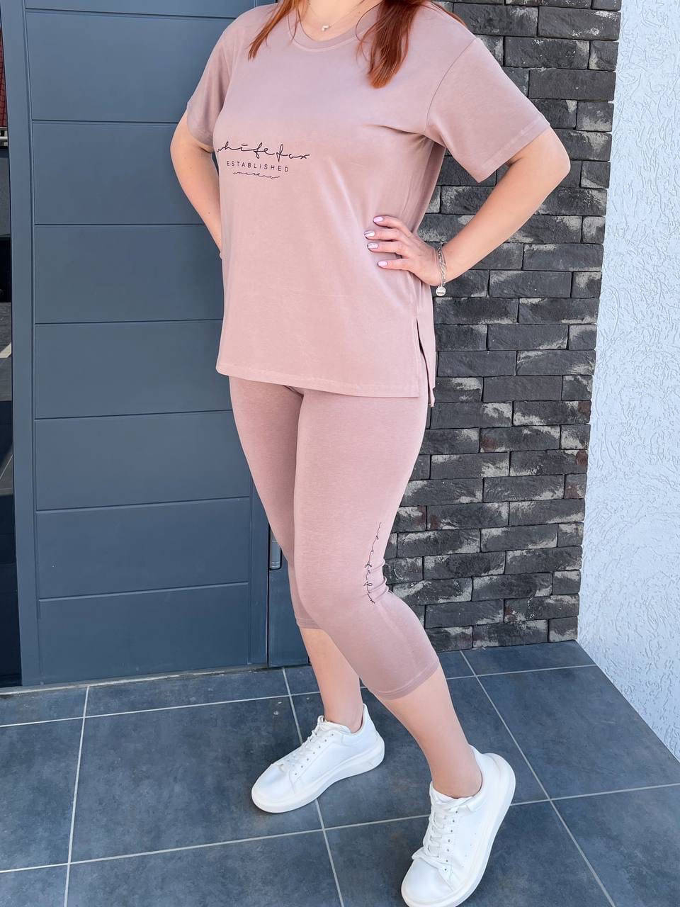 Женский костюм большого размера с футболкой и лосинами, Мокко