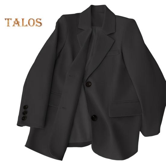Женский костюм, весенне-осенний женский топ, офисный женский пиджак, свободный крой, тонкая куртка с воротником с лацканами, пальто для работы, отдыха XXL чёрный