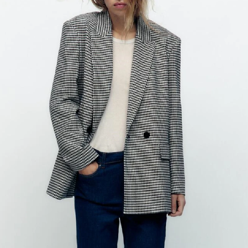 Женский костюм в стиле бойфренда BM & MD & ZA, широкая двубортная куртка в стиле «гусиные лапки», Осень-зима 2022