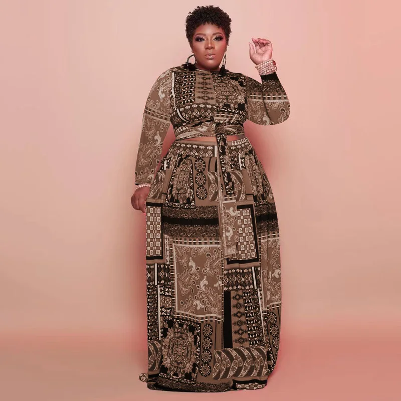 Женский костюм-двойка в этническом стиле с абстрактным принтом, Осень-зима