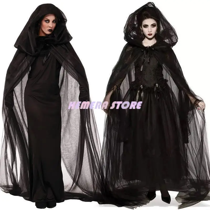 Женский костюм для косплея, длинное платье с изображением черной ведьмы